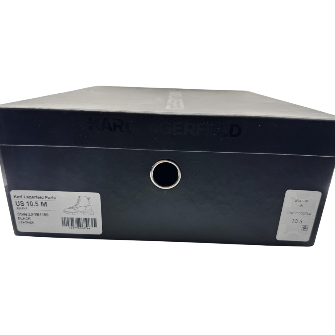 Estas botas de combate de cuero negro para hombre de Karl Lagerfeld destacan por su diseño sofisticado y resistente. Confeccionadas en cuero auténtico, ofrecen durabilidad y comodidad para el uso diario. Su suela antideslizante garantiza estabilidad en diferentes superficies, mientras que el estilo clásico de combate aporta un toque moderno y urbano a cualquier conjunto. Ideales para quienes buscan una mezcla de funcionalidad y elegancia en calzado.