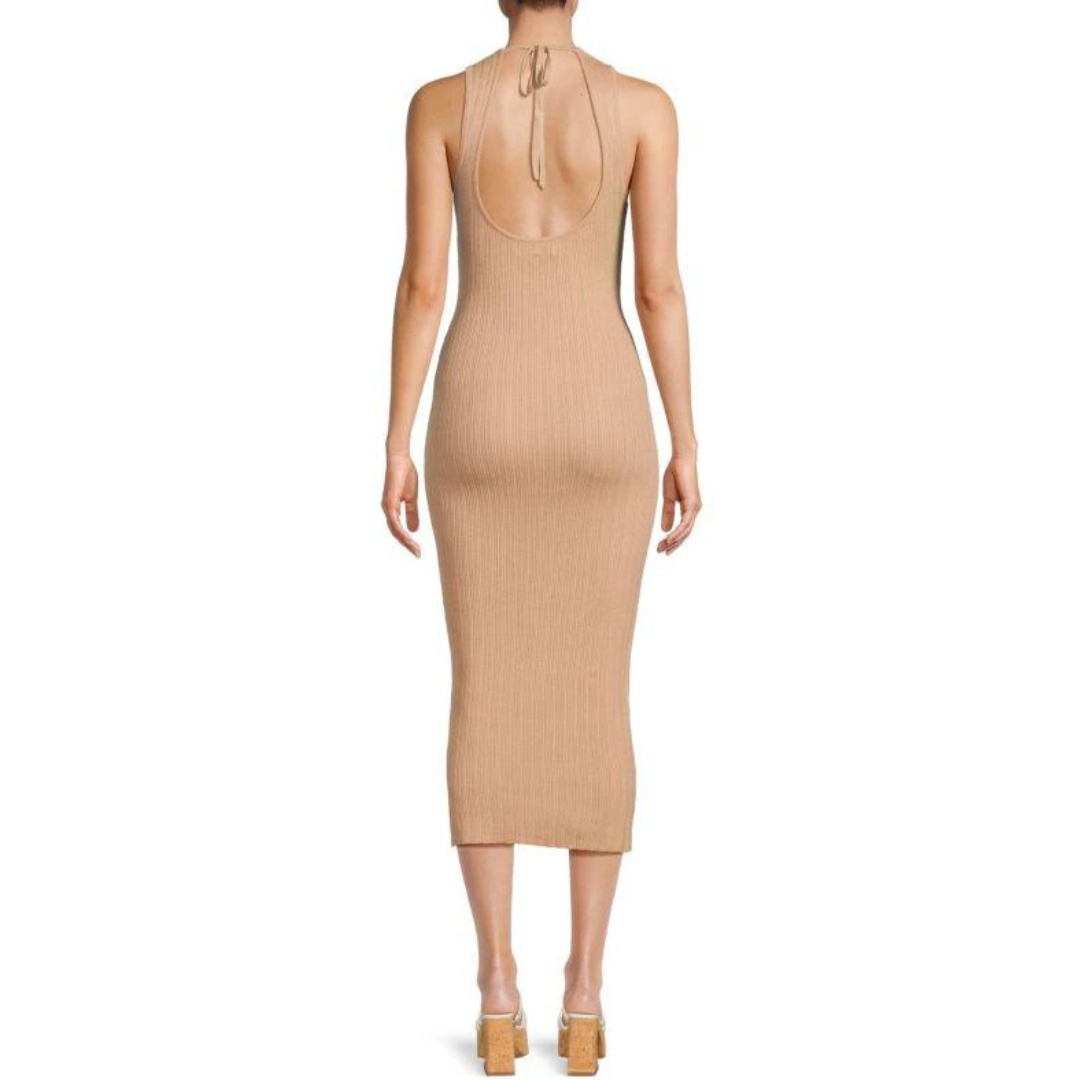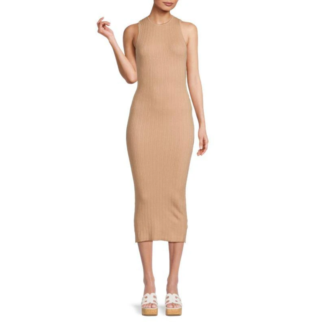 Este vestido de tirantes, realzado con una textura acanalada, presenta una silueta estilizada.
