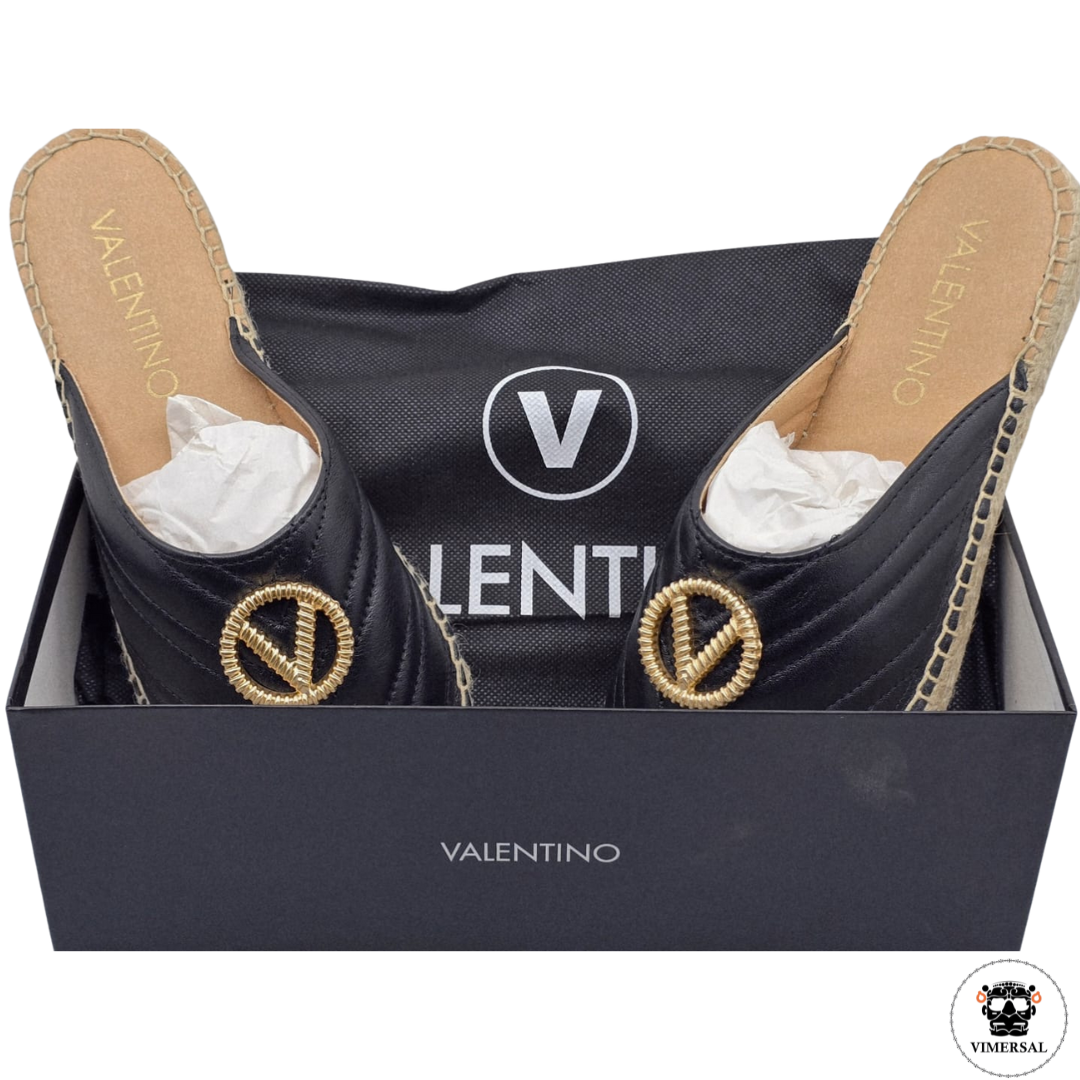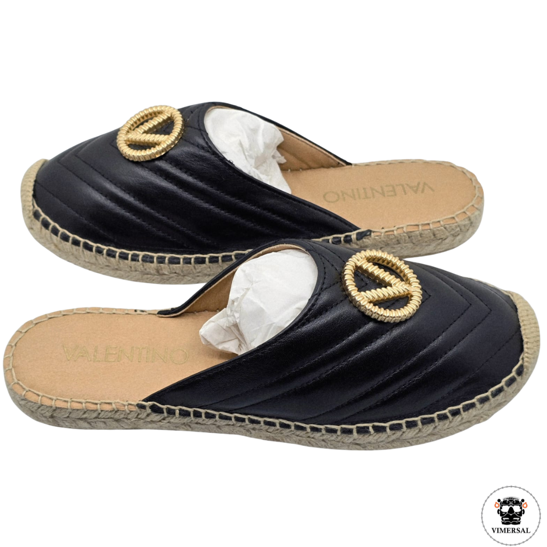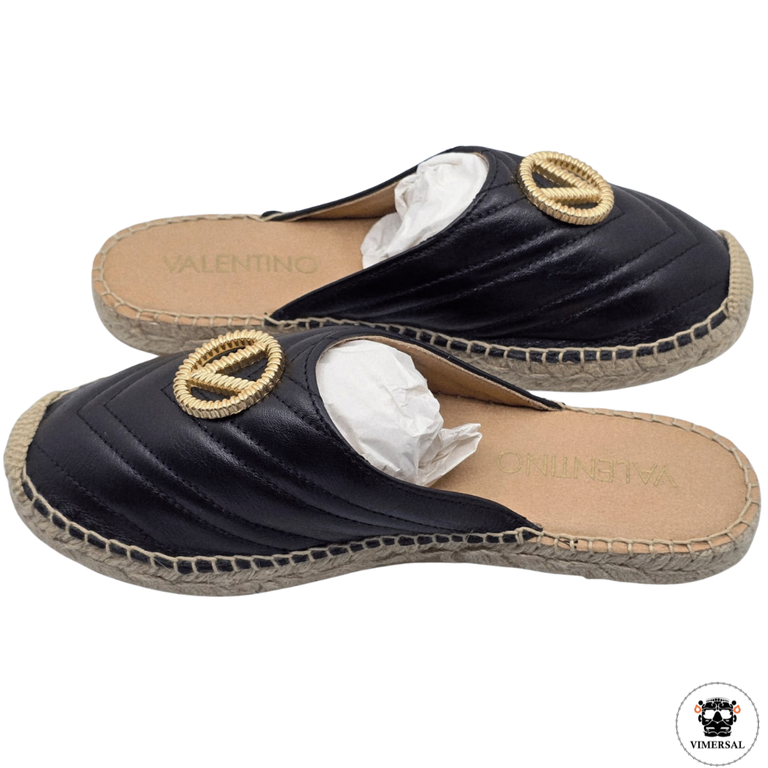 Estas alpargatas Clara de Valentino presentan un diseño clásico elaborado de cuero con suelas de yute y presenta un logo "V" de metal dorado. Su tonalidad neutra y costuras visibles reflejan una mezcla de tradición artesanal y elegancia moderna. Cuentan con una suela ligera que garantiza comodidad y frescura, perfecta para uso en temporadas cálidas. Este calzado combina versatilidad y estilo, siendo ideal para quienes buscan una pieza sofisticada y funcional en su guardarropa.